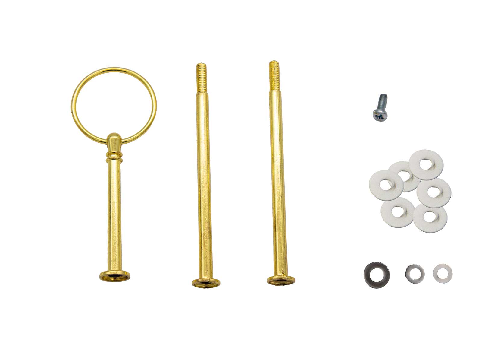 Katlı sunumlarınızı oluşturmak için kullanabileceğiniz en nadide ve şık görünümlü kek standı demiridir. Epoksi ile üreteceğiniz katlar arasındaki bağlantıyı sağlayacak olan altın sarısı renginde katlı sunumluk demiri diğer adıyla cupcake & pasta standı aparatıdır.