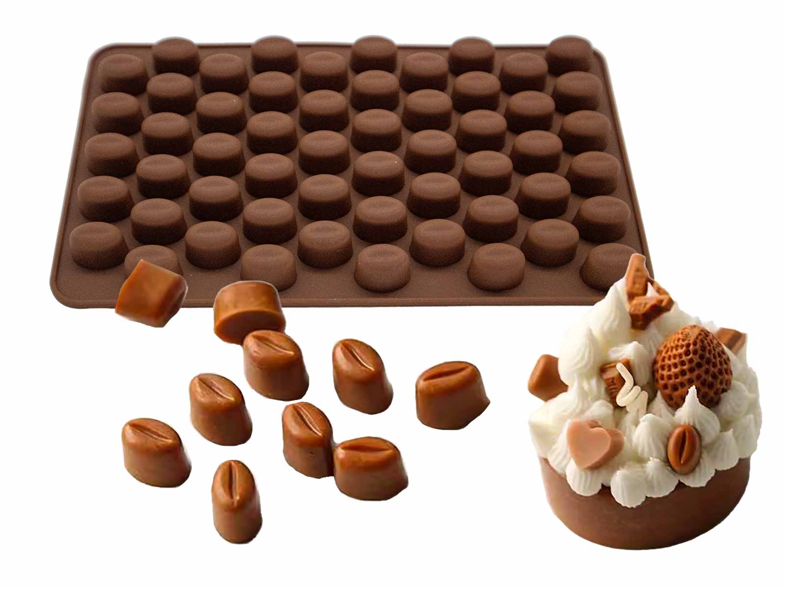 - 1 adet silikon kalıbı içerisinde 50 adet kahve çekirdeği model ürün üretebileceğiniz kalıp olarak gönderilmektedir.