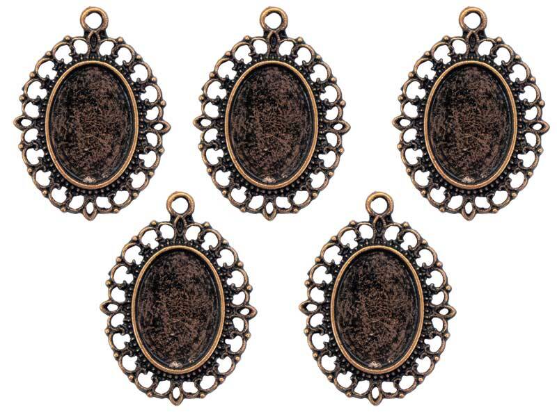 Küçük Ayna Figür Antik Bakır Epoksi Kolye Ucu 5 Adet